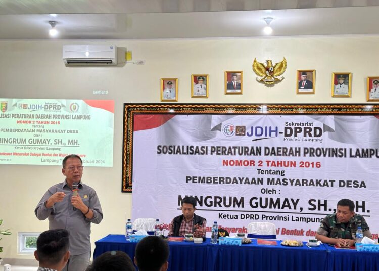 Bandar Lampung(BegawiNews.com)- Anggota Dewan Perwakilan Rakyat Daerah (DPRD) Provinsi Lampung fraksi PDI Perjuangan AR. Suparno menganggap penting agenda rutin Sosialisasi Pembinaan Idologi Pancasila (PIP) dan Wawasan Kebangsaan yang dilaksanakan pimpinan dan anggota DPRD Provinsi Lampung di daerah pemilihannya (Dapil) akhir januari 2024 ini.