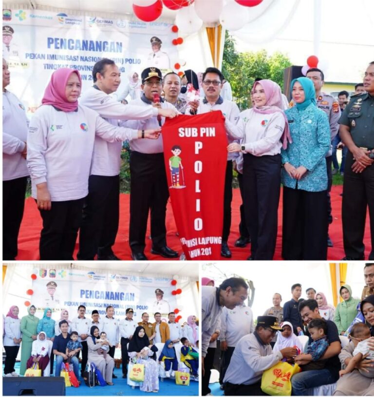 Pencanangan PIN Polio di provinsi Sang Bumi Ruwa Jurai itu berlangsung di Lapangan Desa Bumi Sari, Kecamatan Natar, Kabupaten Lampung Selatan, Selasa (23/7/2024).