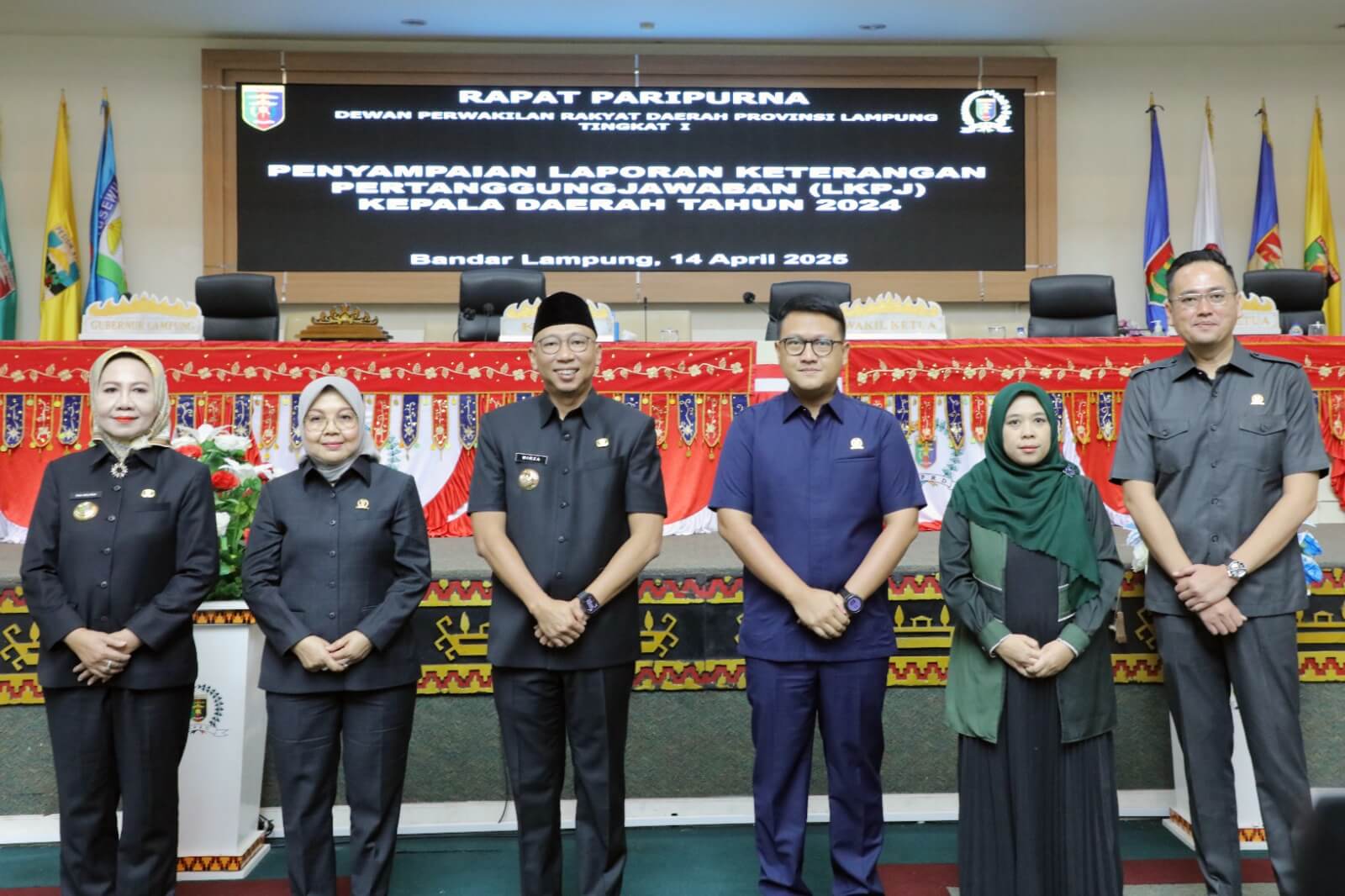 BANDARLAMPUNG(BegawiNews.com)— Gubernur Lampung Rahmat Mirzani Djausal menyampaikan Laporan Keterangan Pertanggungjawaban (LKPJ) Kepala Daerah Tahun Anggaran 2024 dalam Rapat Paripurna DPRD Provinsi Lampung, Bandarlampung, Senin (14/4/2025).